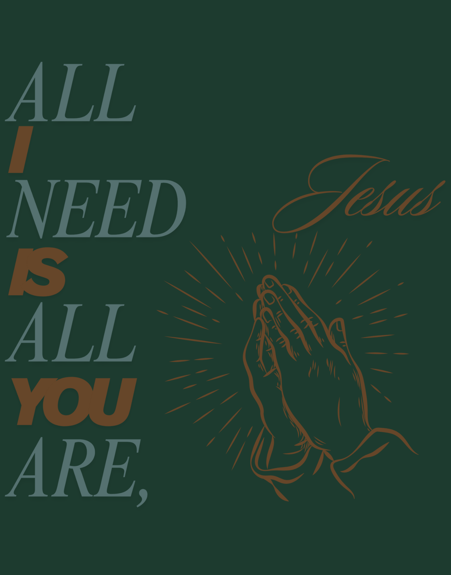 Strip away everything else with this raw, intimate declaration of faith. Our "All I Need Is All You Are" T-Shirt captures the essence of complete surrender and total sufficiency in God. This daring tee is for those brave enough to admit that nothing else compares—not possessions, not status, not the world's empty promises. It's a bold statement that challenges the culture of accumulation and consumption, declaring that wholeness comes from one source alone. Perfect for believers ready to live counterculturally and inspire others through radical faith, this shirt becomes a powerful witness to what truly satisfies. Comfortable, striking, and spiritually grounded, it positions you as someone who's found the answer to life's deepest longing. Stop searching elsewhere. Embrace complete sufficiency. Wear your wholeness.